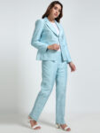 Grace meets understated glamour in this powder blue suit set, crafted from luxurious raw silk for a natural sheen and fluid drape. The subtle shine adds just the right touch of elegance, making it your go-to choice for special occasions.