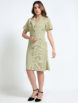A charming everyday essential, this front-open dress features a classic collar and short sleeves—perfect for a clean, relaxed look. Designed for comfort and movement, it’s ideal for regular wear, offering just the right balance of structure and ease. Dress it up with accessories or keep it minimal—effortless style, your way.