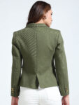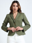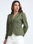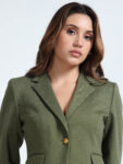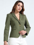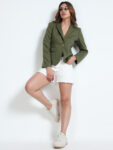 Effortlessly chic in a rich olive green, this blazer is your go-to for versatile styling. Its textured fabric adds a layer of sophistication, while the wrinkle-free, hassle-free maintenance makes it a practical favorite. Pair it with shorts for a relaxed, casual evening look—or switch to black trousers for a sharp, semi-formal statement.