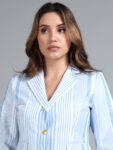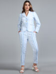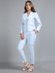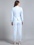 Light Blue Asymmetric Striped Linen Suit